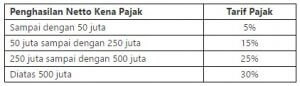 Sesuai dengan Pasal 17 ayat 1, Undang-Undang No. 36 tahun 2008, tarif pajak penghasilan pribadi perhitungannya dengan menggunakan tarif progresif sebagai berikut: